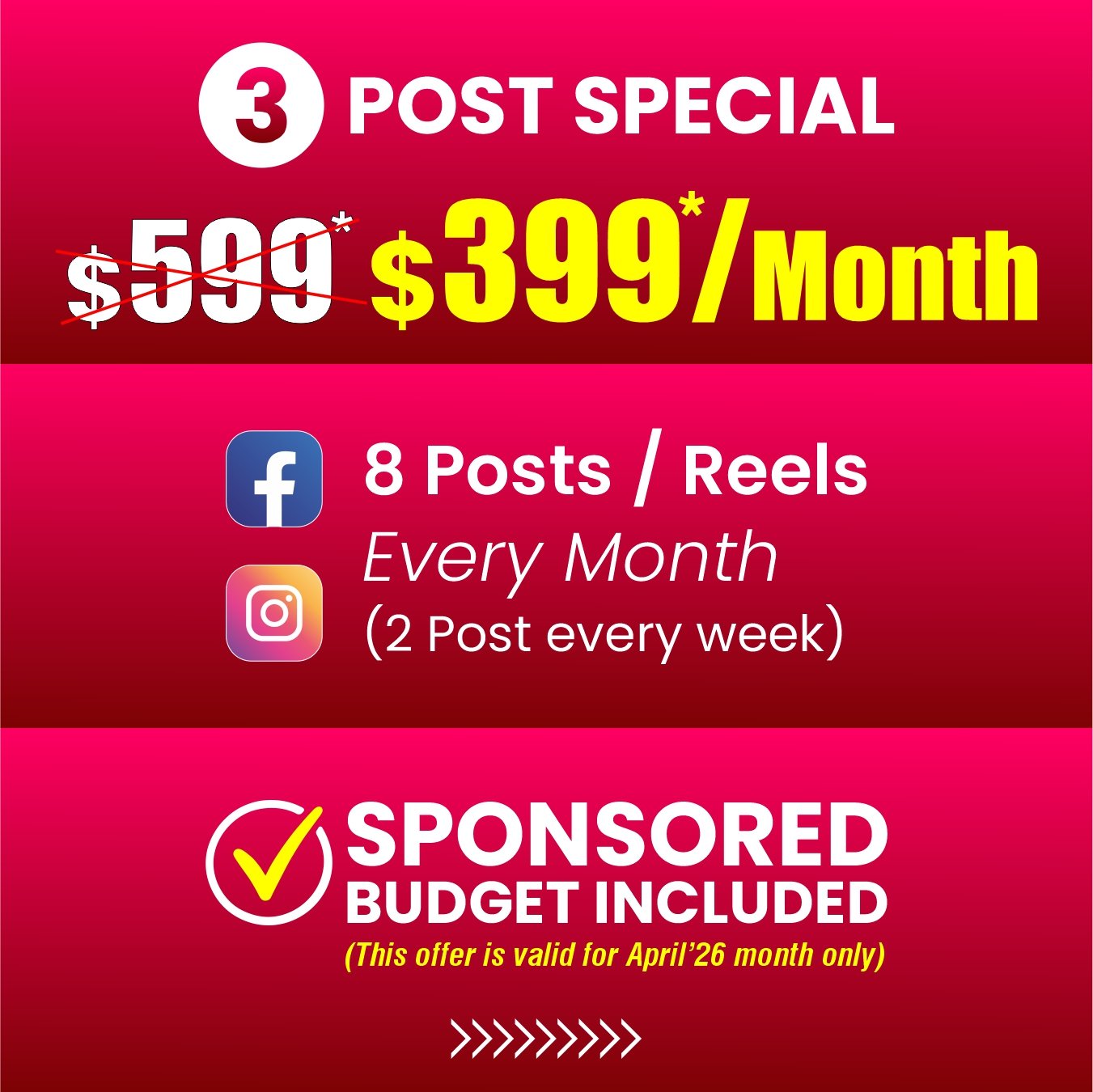 Posts + Flyer Combo 1 flyer + 4 posts/reels monthly + sponsored budget.